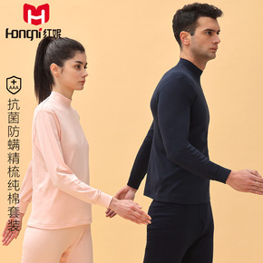 红妮保暖内衣批发防螨新疆棉 无痕内衣圆领男士女士秋...