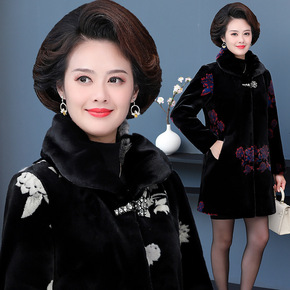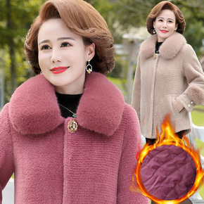 妈妈款洋气仿水貂绒外套加厚本命年老人衣服中年女冬装...