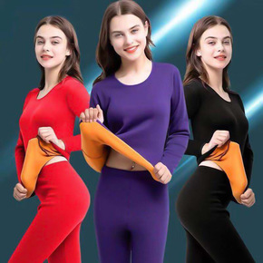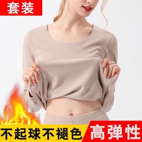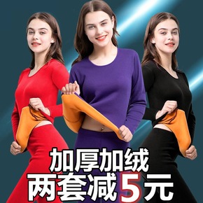 秋衣秋裤女士冬季纯棉套装加绒薄款打底修身美体保暖内...