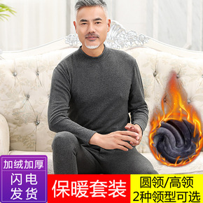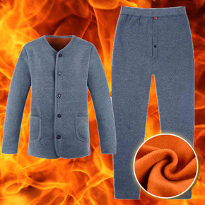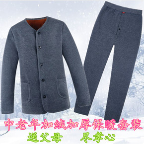 中老年人保暖内衣男老人加绒加厚爷爷开衫套装爸爸秋衣...