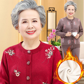 女士秋衣裤加绒加厚上衣长袖中老年人保暖内衣高领秋裤...