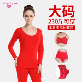 200斤加大码本命年大红保暖内衣女胖MM秋衣秋裤套...