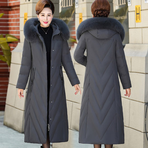 新款中年妈妈装羽绒服女中长款过膝韩版修身白鸭绒大码...