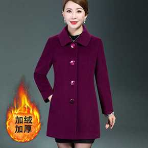 加棉加厚毛呢外套女中长款2021春秋新款中老年女装...