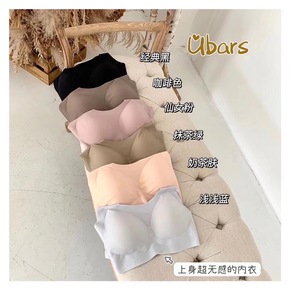 正版日本无痕背心内衣女夏舒适果冻条聚拢运动抹胸式一...