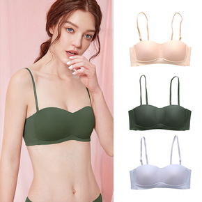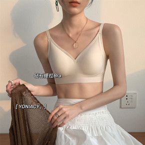 内衣薄款女大胸显小胸聚拢简约无痕无钢圈光面无肩带文...