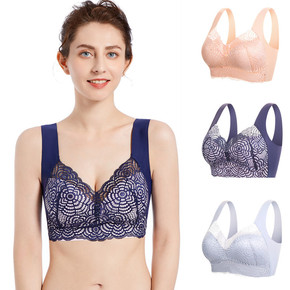 高端新品无痕透气聚拢轻薄蕾丝女士文胸无钢圈调整型收...