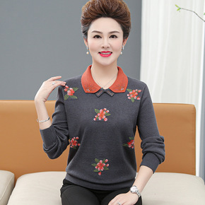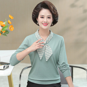中老年女春秋长袖上衣妈妈装翻领针织打底小衫50岁洋...