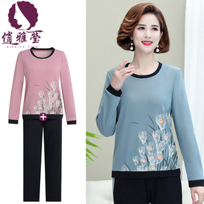中年妈妈秋装套装洋气2021早秋新款中老年运动服女...