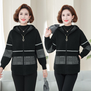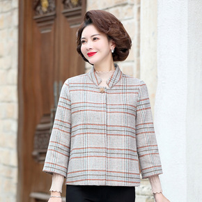 妈妈秋装千鸟格子外套短款2021新款洋气外衣中老年...
