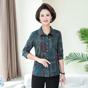 妈妈秋装衬衫中老年女装衬衣长袖薄款休闲老人衣服春秋...