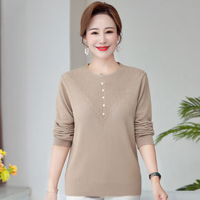 2021秋装气质女式打底衫中老年妈妈装套头毛衣修身...