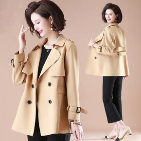 妈妈春秋洋气短款上衣中年女秋装气质风衣中老年翻领薄...