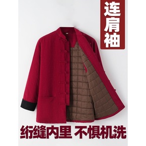 中国风连肩袖唐装男中老年棉衣棉花盘扣爸爸冬季棉服冬...