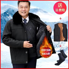中老年人棉衣男套装爸爸冬装厚外套可脱卸毛领爷爷中长...