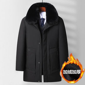 2021商务休闲中老年羽绒服男士加厚中长款防寒服爸...