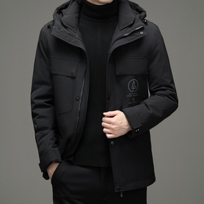 爸爸羽绒服男中长款2021冬季可脱卸帽中老年商务加...