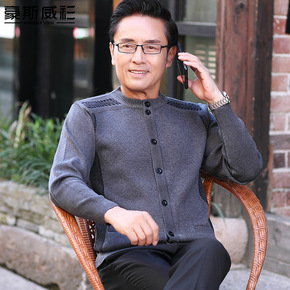 爸爸装秋冬装男士开衫毛衣外套中年男装中老年人加绒加...