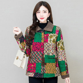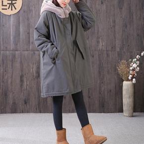 民族风长款复古宽松印花棉衣女冬装新款加绒连帽休闲加...
