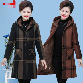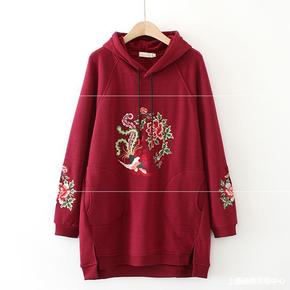 热卖2021冬装新款加绒加厚胖妈妈长袖连帽套头绣花...