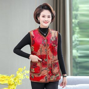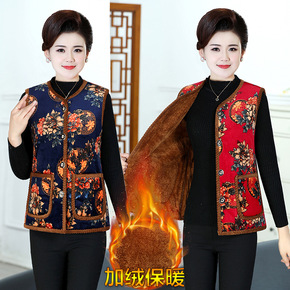 奶奶秋冬装加绒马甲中老年女装马夹短款老人加厚保暖坎...