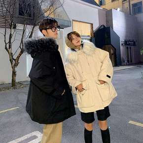 冬季新款情侣装中长款棉衣外套女韩版宽松潮流男士棉服...