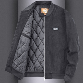 灯芯绒棉衣男秋冬季新款棒球领宽松大码加厚棉服男装潮...
