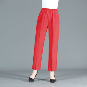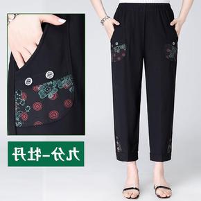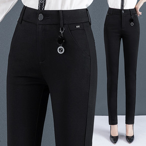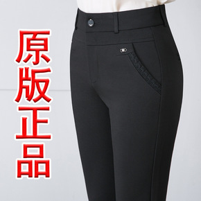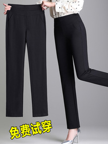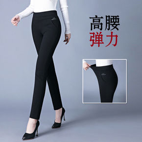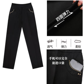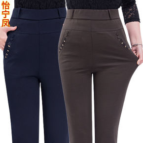 春秋长裤子女中年女裤高腰四面弹力妈妈裤子九分裤女夏...