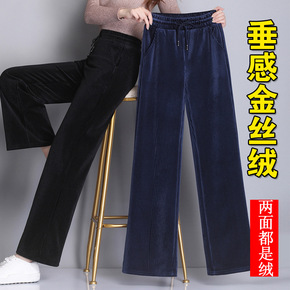 垂坠感金丝绒阔腿裤女春秋季外穿大码胖宽松百搭中年直...