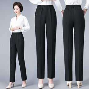 2021夏装春秋装新款裤直筒长裤高腰简约弹力中年女...