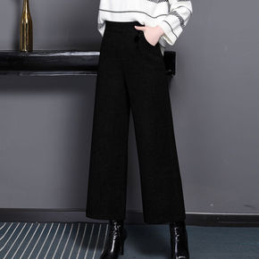 中年女装阔腿裤加厚大码毛呢外裤50岁妈妈装休闲裤女...