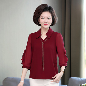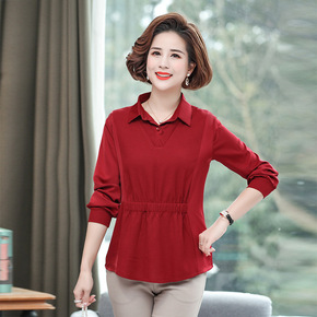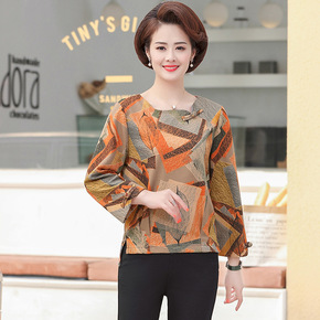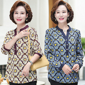 2021秋季新款中老年妈妈装休闲长袖上衣高贵气质收...