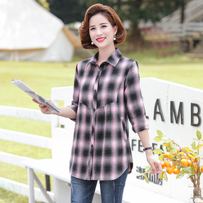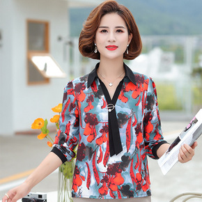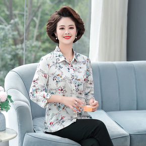 2021中老年妈妈女装时尚翻领秋季衬衫大码宽松遮肚...