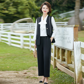 2021秋季中老年妈妈装休闲长袖上衣洋气飘带宽松舒...