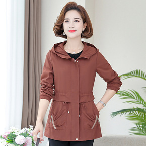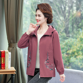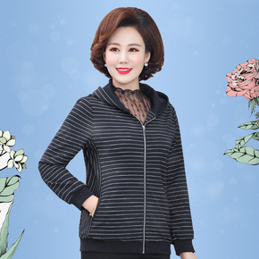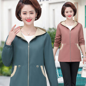 2021秋季新款中老年妈妈装时尚连帽长袖外套大码宽...