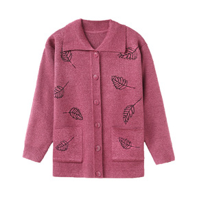 妈妈春秋装翻领针织衫外套女中老年人奶奶老太太长袖毛...
