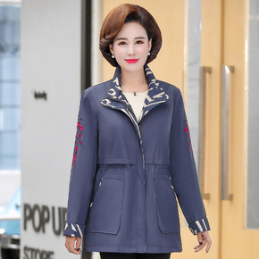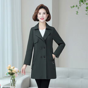 2021秋季新款中老年妈妈装休闲时尚翻领长袖风衣外...