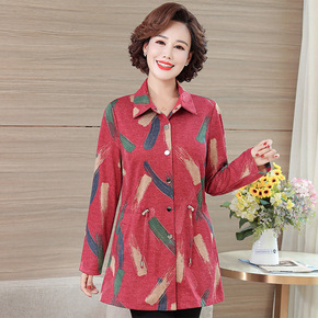 中老年妈妈装秋季新款翻领时尚休闲长袖上衣大码宽松舒...