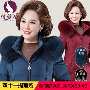 俏雅莹妈妈装冬羽绒服新品高领狐狸毛包边洋气轻盈保暖...