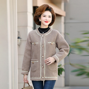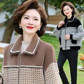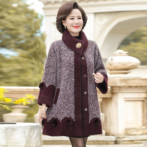 新款妈妈冬装外套中年女秋冬装颗粒绒毛呢中老年洋气上...