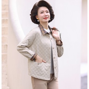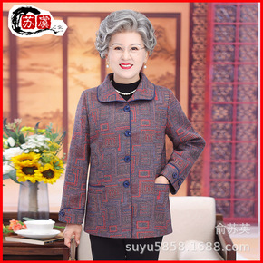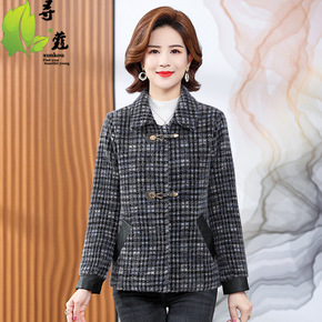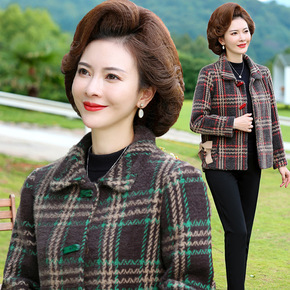 中老年女装毛呢外套春秋季新款妈妈装短款格子呢外套中...