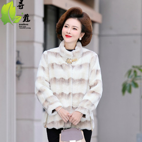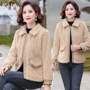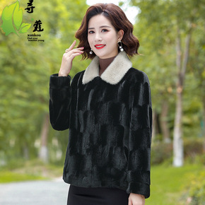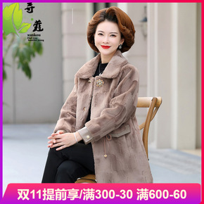 小个子妈妈秋冬装仿水貂绒外套中年皮毛一体大衣中老年...