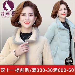 2022冬季款45-55-65岁妈妈装外套白鸭绒刺...