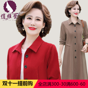 俏雅莹妈妈装秋季新品中长款大衣纯色防风保暖亲肤洋气...