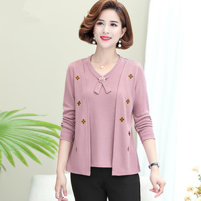 妈妈装春装新款打底衫中老年女装洋气四五十岁妇女长袖...