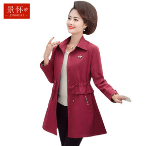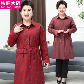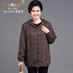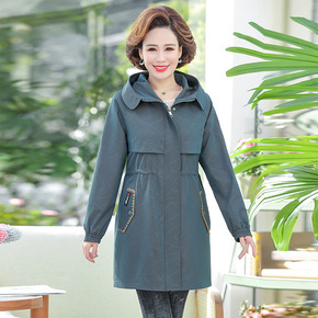 中老年妈妈装秋新款休闲长袖风衣外套大码宽松遮肚连帽...
