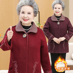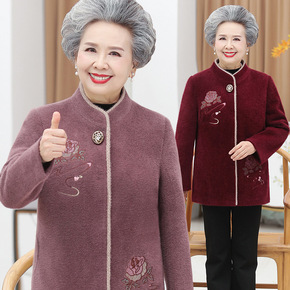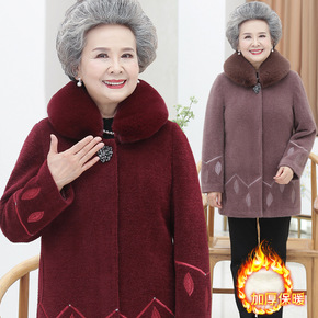 奶奶装冬装加绒加厚外套70岁中老年妈妈水貂绒毛呢开...