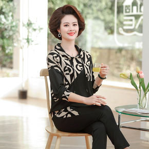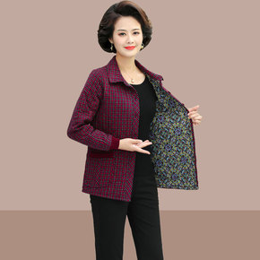 中老年妈妈装秋季长袖外套翻领气质优雅大码宽松遮肚时...