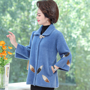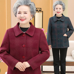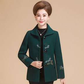 中老年人女装秋冬装毛呢外套女大码短款呢子大衣50-...