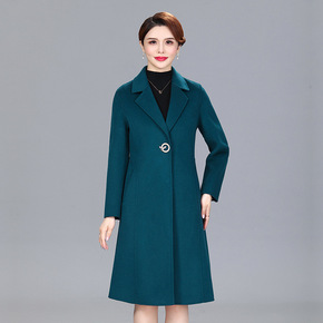 新双面呢羊绒大衣羊毛尼风衣开衫外套呢子妈妈装西装领...